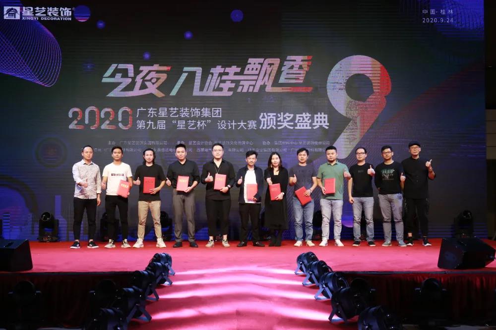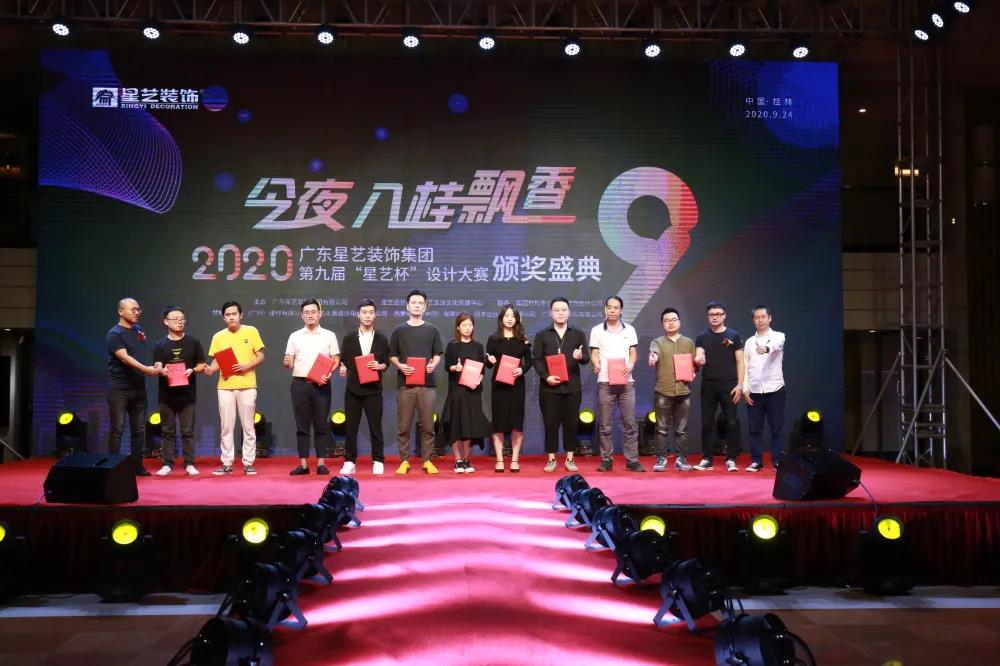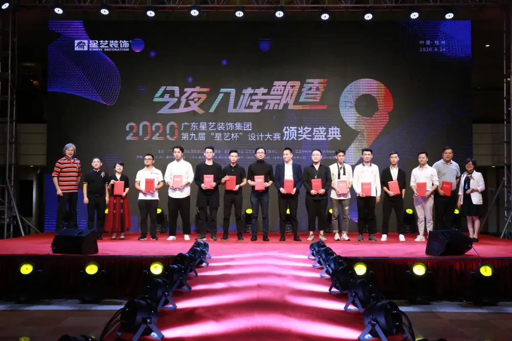 9月24日晚,由廣東星藝裝飾集團(tuán)有限公司主辦,星藝設(shè)計(jì)協(xié)會(huì)、星藝裝飾文化傳媒中心承辦,星藝集團(tuán)材料中心、星藝裝飾桂林公司協(xié)辦,德高(廣州)建材有限公司、江蘇永鼎盛達(dá)電纜有限公司、西蒙電氣(中國(guó))有限公司、日豐企業(yè)集團(tuán)有限公司、廣州立邦涂料有限公司贊助的2020第九屆“星藝杯”設(shè)計(jì)大賽頒獎(jiǎng)盛典在桂林盛大舉行。來(lái)自星藝裝飾全國(guó)各單位的近300名設(shè)計(jì)總監(jiān)和獲獎(jiǎng)?wù)邊⒓宇C獎(jiǎng)盛典。