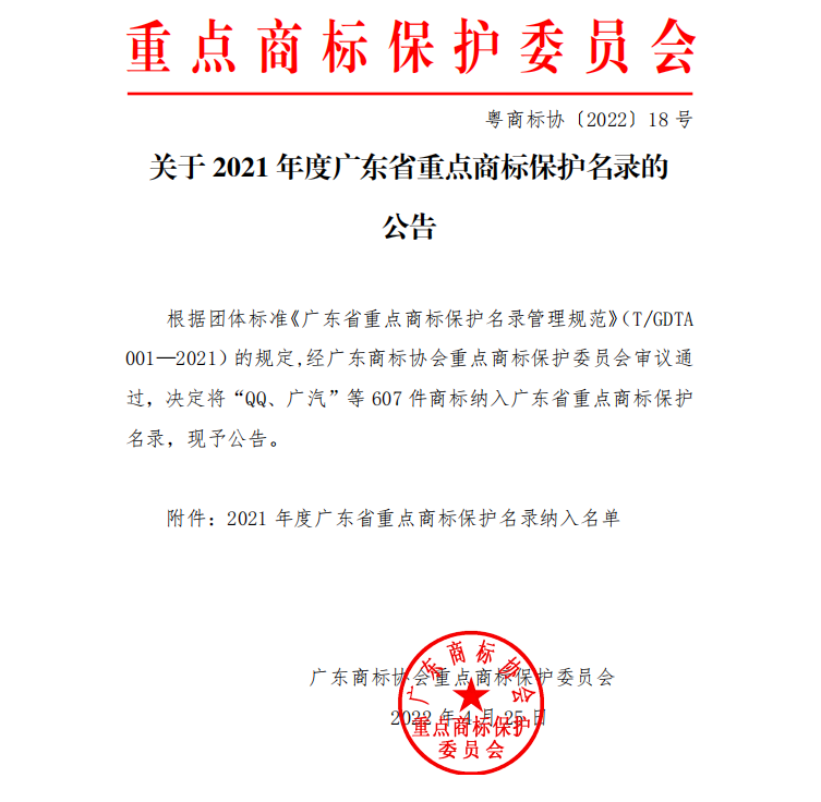 4月25日,廣東省商標(biāo)協(xié)會公布了《2021年度廣東省重點(diǎn)商標(biāo)保護(hù)名錄納入名單》,共計(jì)607件商標(biāo)被納入名錄。“星藝裝飾”商標(biāo)入選《2021年度廣東省重點(diǎn)商標(biāo)保護(hù)名錄納入名單》。