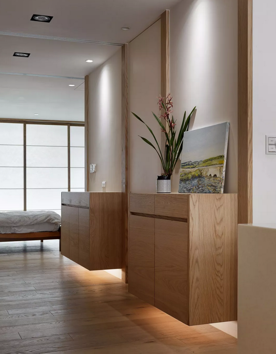 柜體內(nèi)的照明一直是個老大難,自從有了燈帶,這個問題就很容解決了。在柜子內(nèi)或者柜體頂部底部設(shè)置燈帶,可以弱化空間的封閉感和違和感。當(dāng)打開柜子時,也不會因?yàn)楣耋w內(nèi)部黑暗而影響視覺,而且有利于營造氛圍。如果再智能點(diǎn)可以配上聲控裝置,就更加方便了。