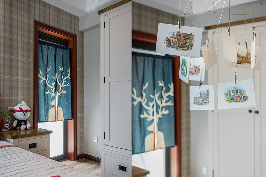 窗簾的設(shè)計(jì)也應(yīng)別具特色。色彩鮮艷、圖案活潑的樣式最佳。設(shè)計(jì)可以根據(jù)四季的變換,配上花色不同的窗簾。如在春天,窗簾可選用以綠色為基調(diào)的自然紋樣式。在明媚的夏日,可配上防日曬的彩色百葉窗等等。床上用品可繡上可愛(ài)的動(dòng)物圖形或數(shù)字英文字母等。色彩的多樣化可使兒童產(chǎn)生豐富的幻想,促進(jìn)他們智力和情感的提高。
