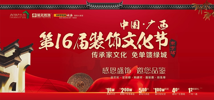 十八載邕情緣,打造16屆裝飾盛會(huì)。星藝裝飾2005年率先成功舉辦首屆“裝飾文化節(jié)”,歷經(jīng)15屆的裝飾文化傳承,鑄就了家喻戶曉的品牌口碑。