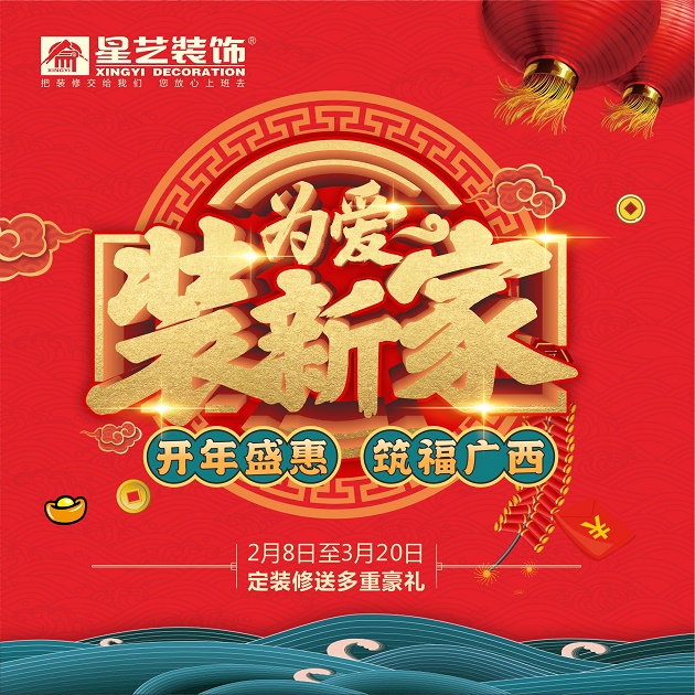 星藝裝飾1991年創(chuàng)始于廣州,31年品牌,深耕南寧20年,現(xiàn)已在全國開設(shè)480家、廣西28家、南寧7家直營門店,50000星藝人31年來專注打造品質(zhì)家裝,為回饋綠城市民對星藝裝飾的厚愛。2022年開年盛惠 筑福廣西多重好禮鉅惠活動,具體優(yōu)惠細(xì)則如下: