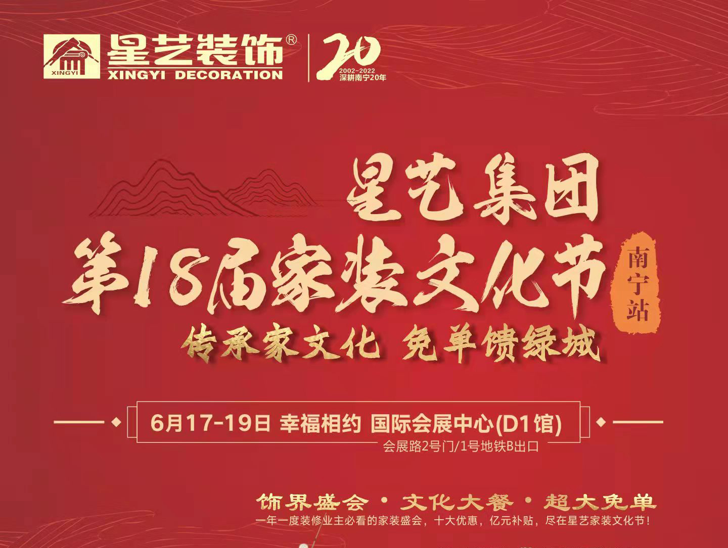 星藝裝飾第18屆家裝文化節(jié)(南寧站)啟動(dòng)啦!18萬(wàn)免單等你拿!