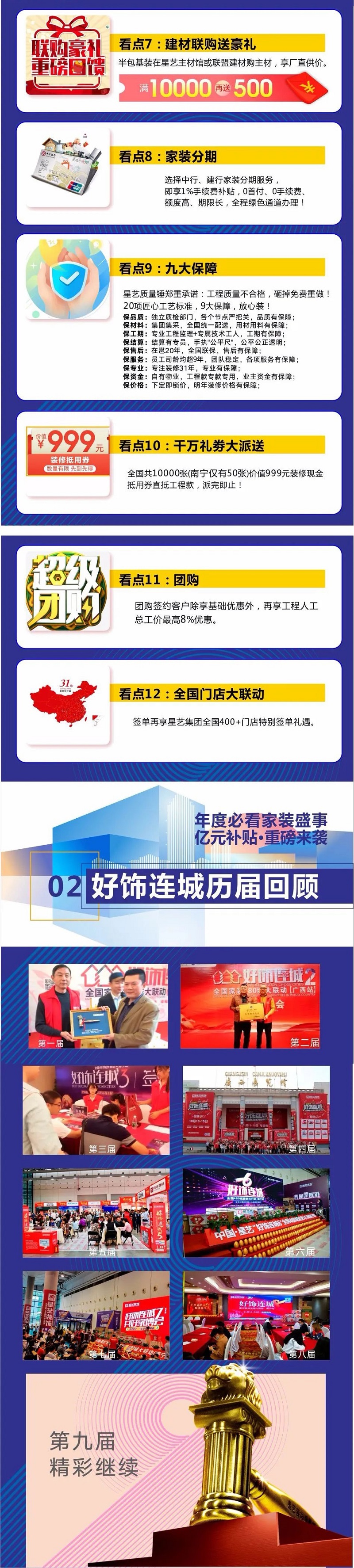 2014年星藝裝飾“好飾連城”全國大聯(lián)動首屆成功舉辦,一年一屆好飾不斷上演,讓星藝旋風(fēng)吹遍全國各地。值此“好飾連城9”再次席卷全國,一線建材品牌廠價助陣,星藝總部+歐派總部聯(lián)合讓利,共同打造一場品質(zhì)家裝盛惠,南寧站具體優(yōu)惠如下:
