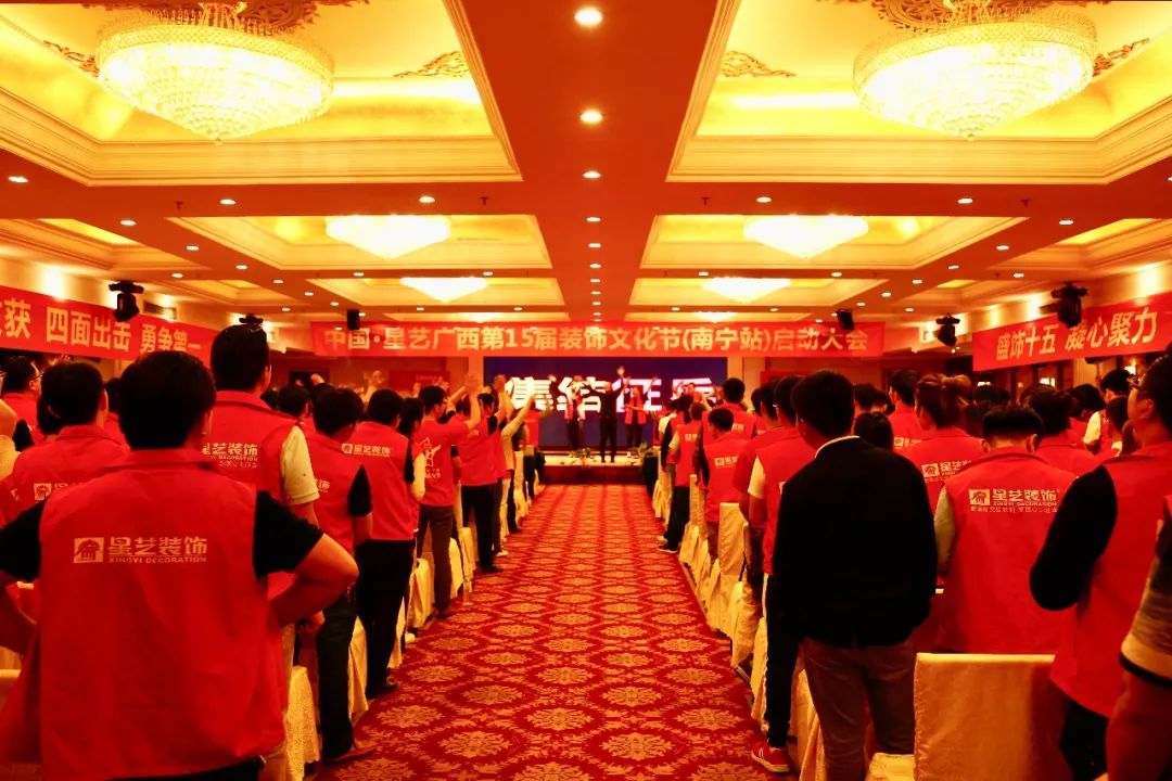 2019年4月7日,中國 ? 星藝廣西第十五屆裝飾文化節(jié)(南寧站)啟動(dòng)誓師大會(huì)在南寧金旺角大酒店隆重舉行。星藝裝飾集團(tuán)決策委成員、廣西區(qū)域總監(jiān)徐橘、南寧區(qū)域總經(jīng)理周平生、南寧區(qū)域設(shè)計(jì)總監(jiān)李明、參展聯(lián)盟品牌及南寧區(qū)域全體員工約五百余人歡聚一堂,共襄盛舉,為星藝裝飾連續(xù)舉辦15年的裝飾文化節(jié)活動(dòng)學(xué)習(xí)攢力,簽署“軍令狀”,定目標(biāo)。本次啟動(dòng)大會(huì)取得圓滿成功,也預(yù)示著15屆裝飾文化節(jié)(南寧站)定將再創(chuàng)輝煌。