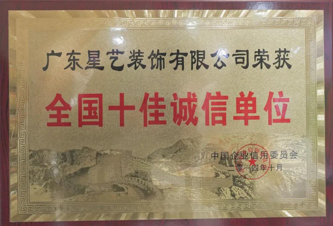 星藝裝飾自創(chuàng)建30年、入邕18年以來,始終以誠信經(jīng)營、優(yōu)質(zhì)高效、服務(wù)大眾為己任。 1998年星藝裝飾在國內(nèi)首先發(fā)布了“讓工地開口說話”的裝修質(zhì)量宣言,2000年通過了ISO9001國際質(zhì)量體系認證,2005年在業(yè)內(nèi)首先發(fā)布《全國質(zhì)量聯(lián)保宣言》,堅守標準和承諾,自覺接受社會監(jiān)督。先后獲得“中國講誠信、守合同、重質(zhì)量典范企業(yè)”、“AAAA級誠信達標企業(yè)”、“全國住宅裝飾裝修行業(yè)百強企業(yè)”等多項信譽榮譽稱號。