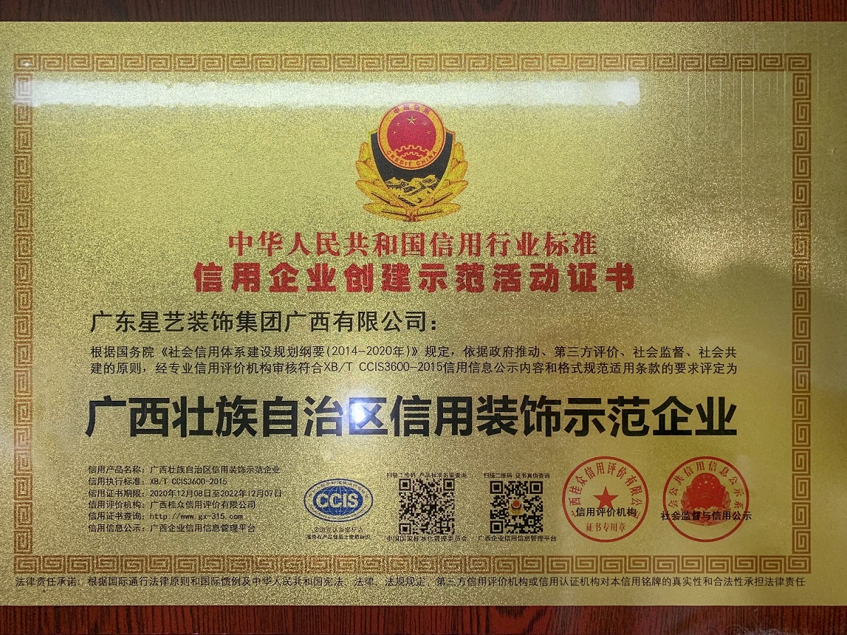 “廣西壯族自治區(qū)信用裝飾示范企業(yè)”