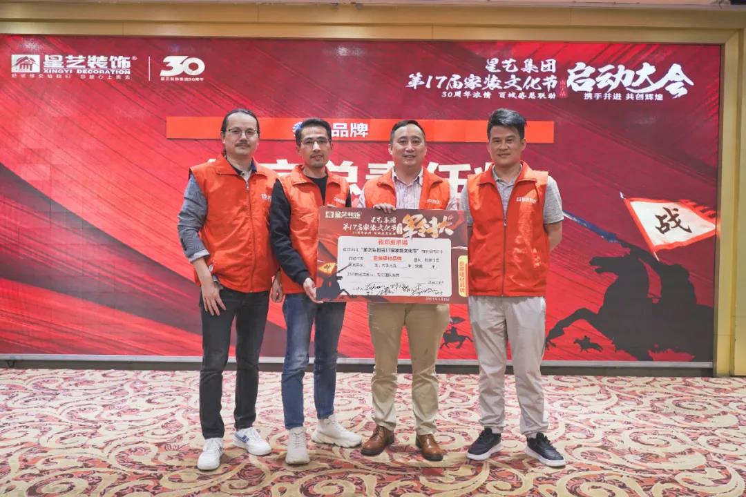 2021年4月9日,星藝裝飾第17屆家裝文化節(jié)(南寧站)在南寧金旺角國(guó)際大酒店隆重舉行, 集團(tuán)決策委成員、廣西區(qū)域總監(jiān)徐橘,南寧區(qū)域總經(jīng)理周平生,南寧區(qū)域總監(jiān)李明,建材聯(lián)盟商家品牌代表以及星藝南寧各門店經(jīng)理、全體設(shè)計(jì)師、營(yíng)銷員、工程部家人歡聚一堂,共襄盛舉,為17屆家裝文化節(jié)活動(dòng)積累學(xué)習(xí),定目標(biāo),簽署“軍令狀”,在全體員工嘹亮的《星藝人》歌聲中開啟一年一遇的精彩盛事!