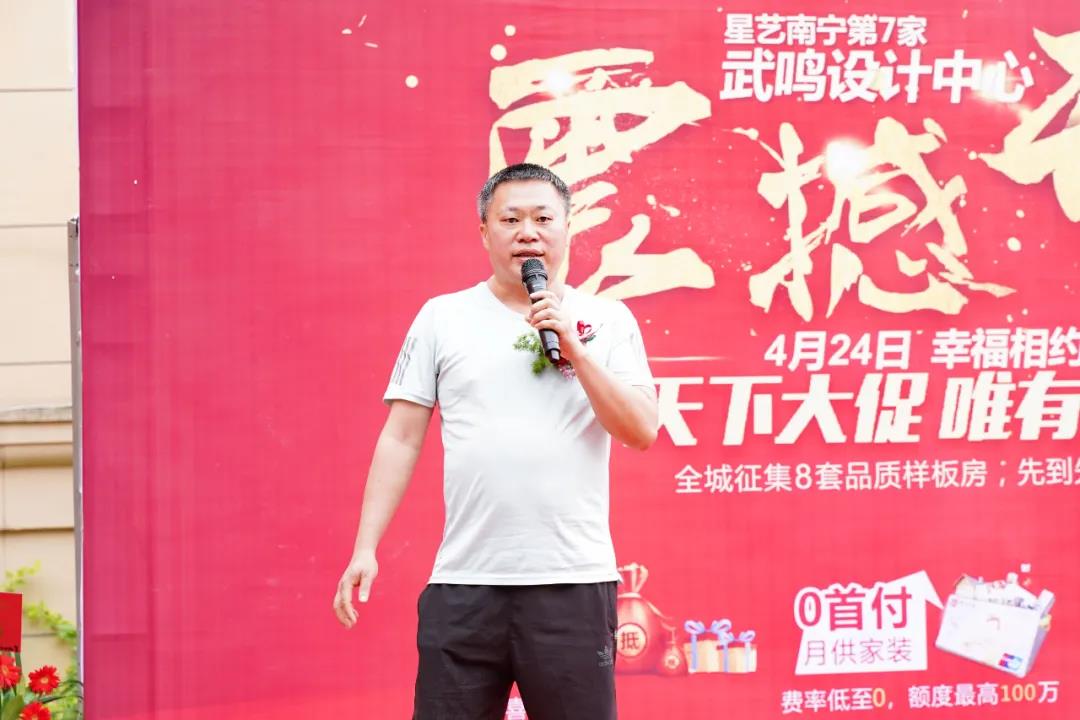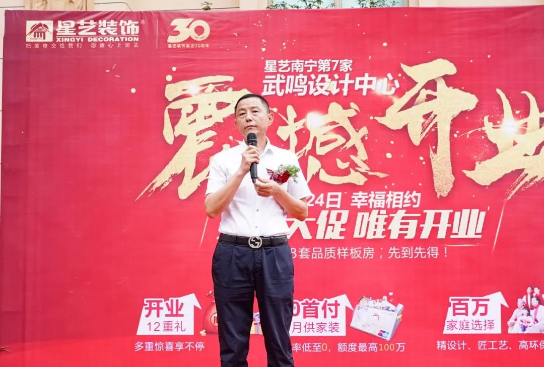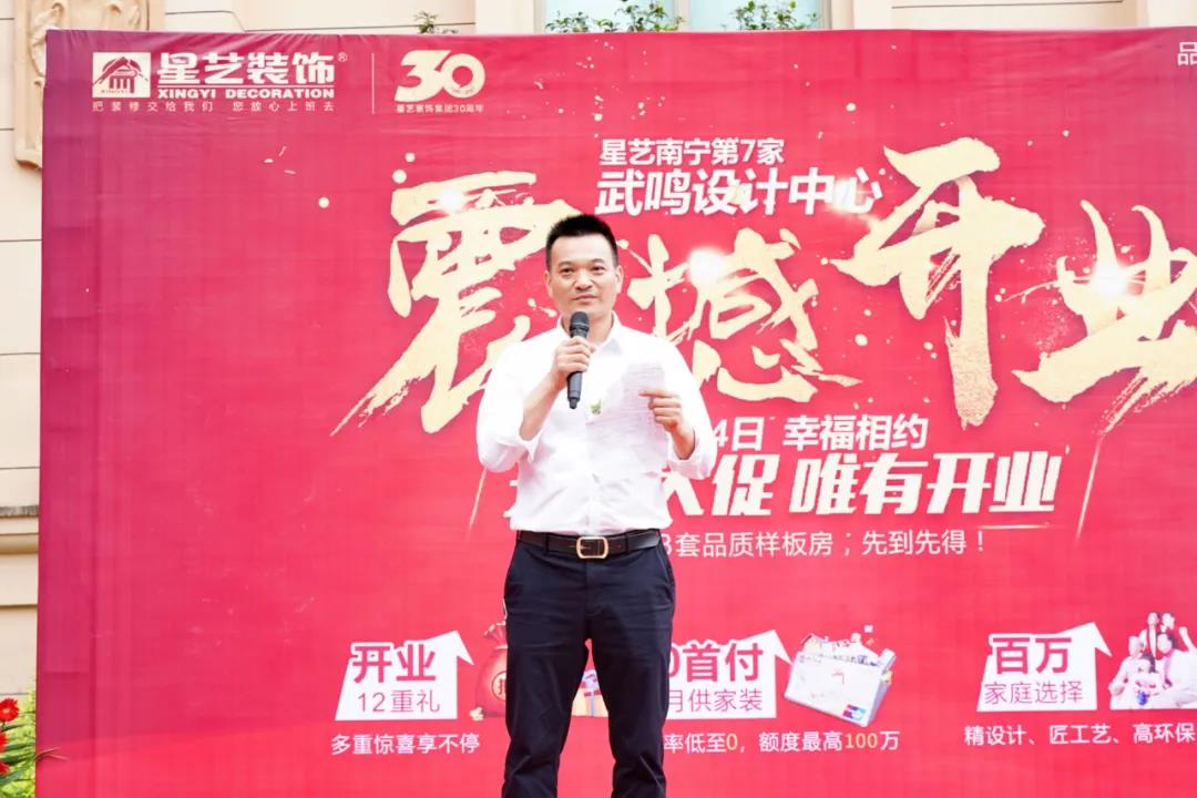 南寧區(qū)域總經(jīng)理周平生上臺致辭,首先,周總對在場諸位嘉賓朋友的到來表示熱烈歡迎和衷心感謝,星藝裝飾于2002年入駐南寧,歷經(jīng)19年的發(fā)展遍布八桂大地,在此春夏之交,生機盎然的時節(jié),南寧星藝裝飾與武鳴朋友們共同迎來武鳴設計中心的盛大開業(yè),不斷成長離不開每一位星藝人的辛勤付出,也離不開萬千客戶的厚愛與支持。恰逢星藝裝飾30年之際,全體星藝人將不忘初心,感恩前行,武鳴設計中心也將用更好更強更優(yōu)的服務回饋消費者,全力為武鳴市民打造溫馨住家空間,踐行“把裝修交給我們,您放心上班去”的服務理念。