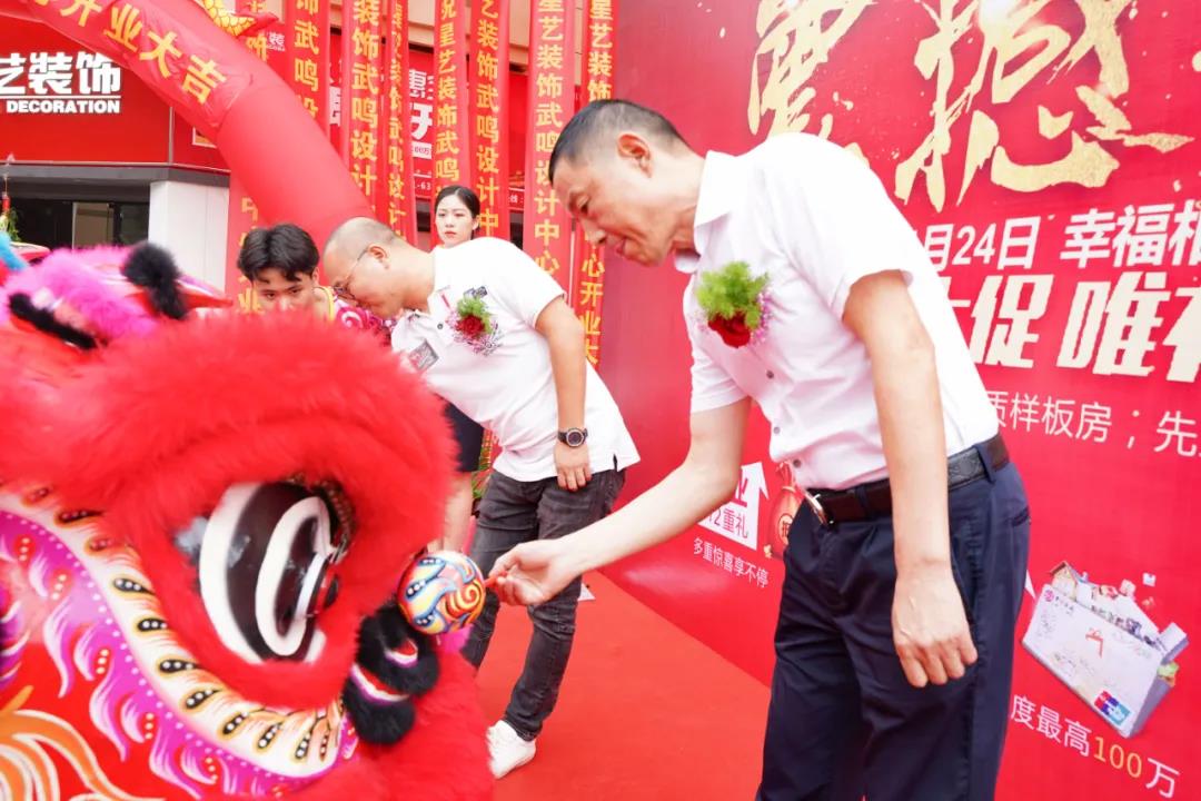 緊接著,集團決策委成員、廣西區(qū)域總監(jiān)徐橘,南寧區(qū)域總經(jīng)理周平生上臺進行“龍獅點睛”儀式,喚醒“沉睡”的龍獅;隨后,武鳴設計中心經(jīng)理易槐海,南寧區(qū)域總監(jiān)李明進行“接青儀式”,接住龍獅送上的福禮,為南寧星藝裝飾武鳴設計中心未來的蓬勃發(fā)展送上美好的祝福!