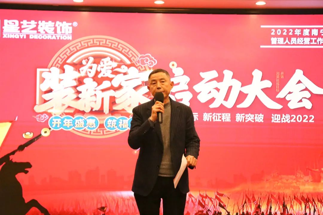 在啟動(dòng)前,由星藝裝飾南寧區(qū)域設(shè)計(jì)總監(jiān)李明上臺(tái)回顧分析2021年星藝南寧所取得的成績,在同比前年數(shù)據(jù)、上游市場的變化,李工表示“星藝南寧業(yè)績能保持穩(wěn)定增長的局面實(shí)屬不易”,并強(qiáng)調(diào)“不止團(tuán)隊(duì)管理者要?jiǎng)?chuàng)新,部門也必須創(chuàng)新”,隨后與各個(gè)部門負(fù)責(zé)人簽訂年度目標(biāo)責(zé)任書、開年活動(dòng)任務(wù)軍令狀。