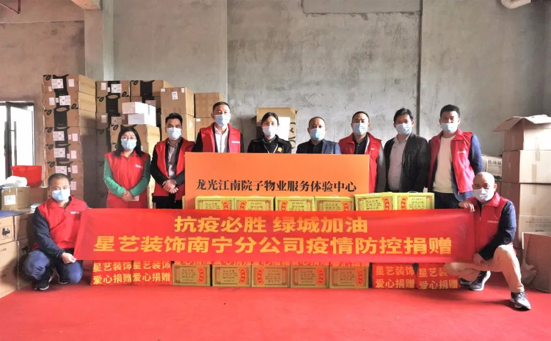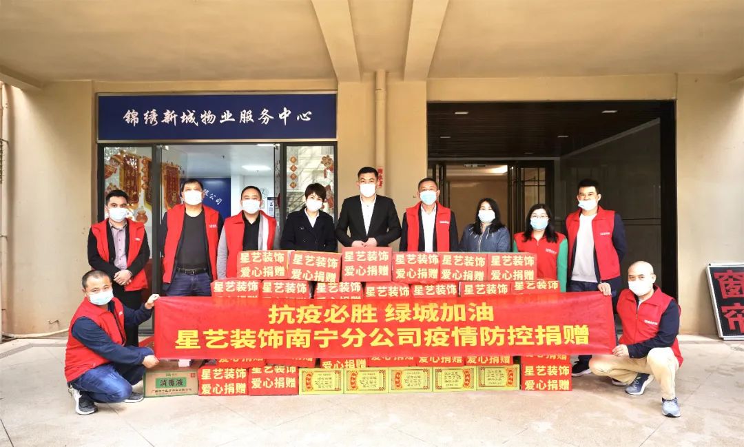 星藝裝飾入邕20年以來,始終踐行誠信正直的企業(yè)精神,在做好品質(zhì)服務(wù)的同時,積極履行勇于奉獻的社會責(zé)任;在南寧疫情防控的特殊時刻,星藝南寧積極響應(yīng)集團號召,為當(dāng)?shù)乜挂咭痪€提供力所能及的支持和幫助,傳遞力量和信心,以實際行動共同戰(zhàn)“疫”。