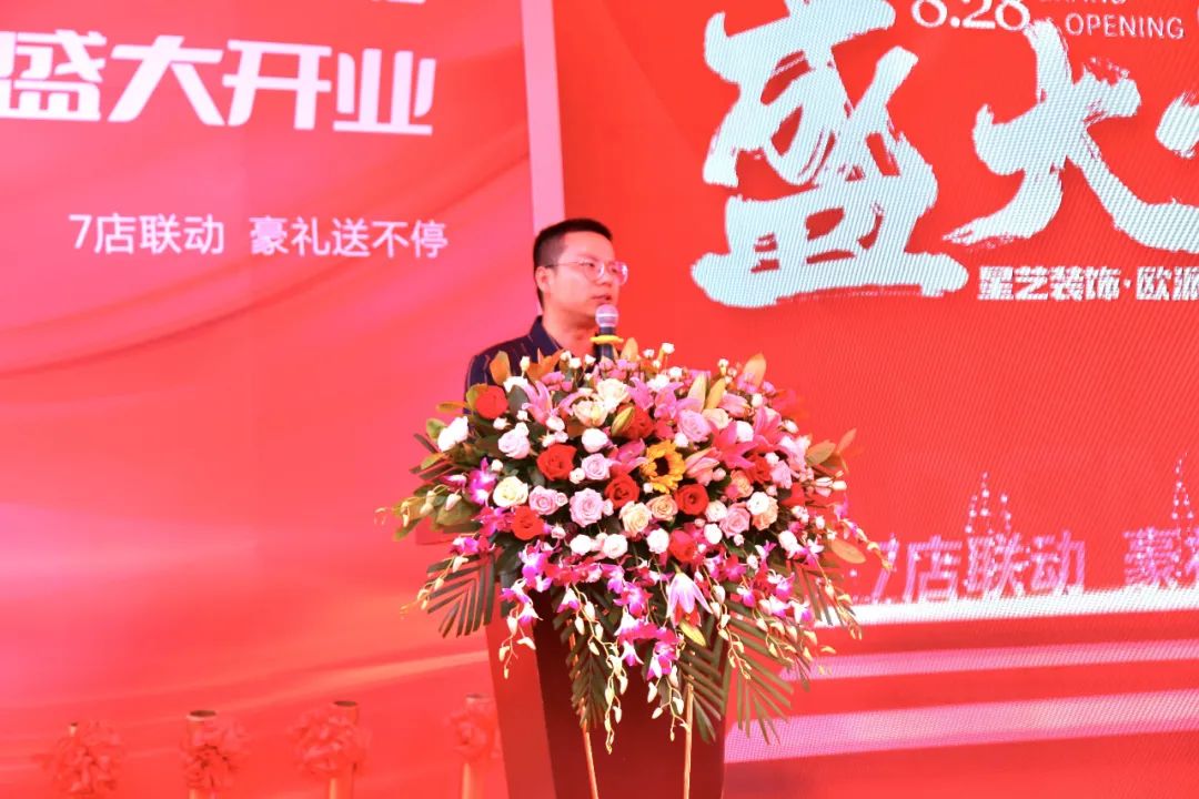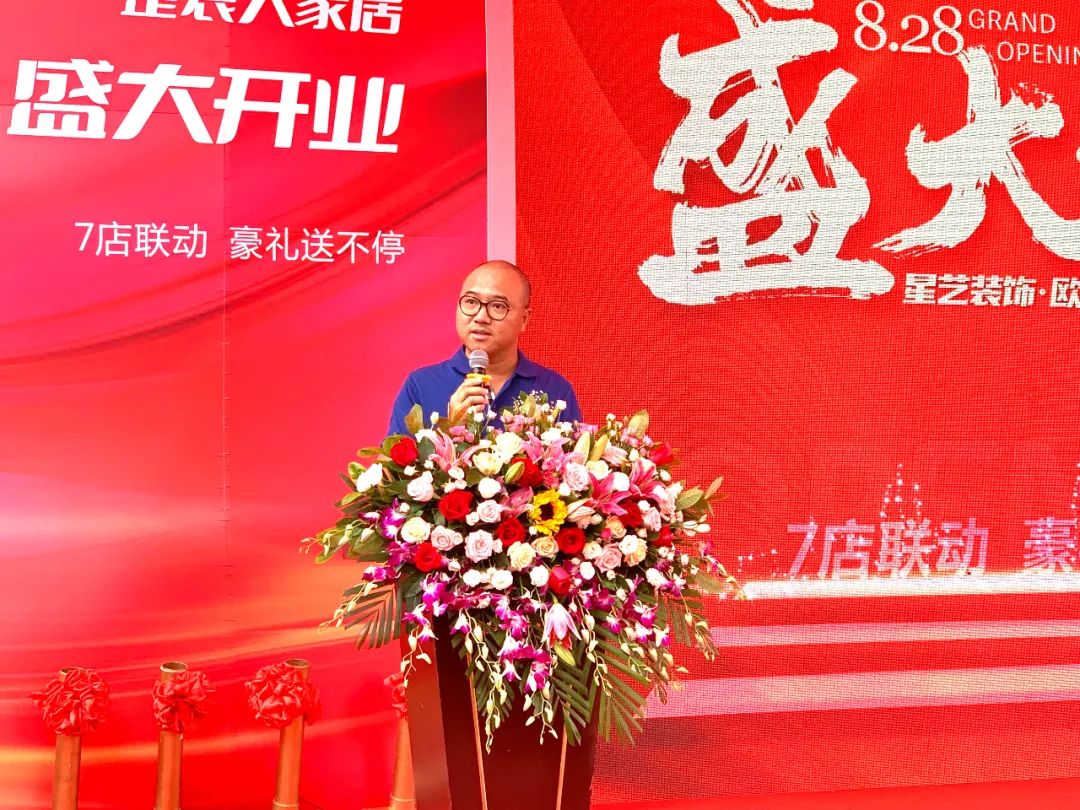 隨后,歐派集團(tuán)整裝大家居經(jīng)銷部總監(jiān)黃亮亮黃總上臺(tái)致辭,黃總表示很榮幸今天能被邀請(qǐng)參加如此盛大的開業(yè)儀式,2018年,歐派率先開創(chuàng)“整裝賦能”的整裝大家居模式,是行業(yè)里面第一家提出大家居概念的品牌,攜手當(dāng)?shù)貙?shí)力最強(qiáng)的星藝裝飾相互賦能,為用戶提供一站式從設(shè)計(jì)到落地的整裝最優(yōu)模式,真正的為客戶實(shí)現(xiàn)所見即所得的家裝服務(wù),也是未來(lái)最具性價(jià)比的趨勢(shì), 因此暨此開業(yè)盛事,預(yù)祝星藝裝飾 · 歐派整裝大家居生意興隆。