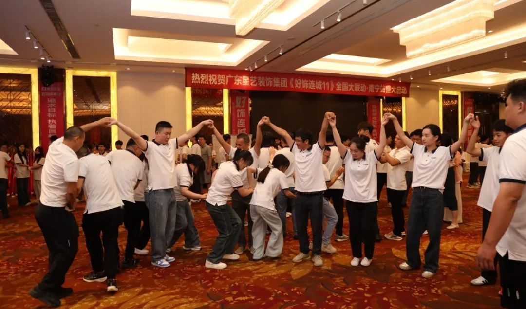 隨后,啟動會主持人、資深裝修導師沈小軍老師進行啟動團隊拓展,沈小軍老師結合活動亮點與星藝裝飾的核心優(yōu)勢,通過現(xiàn)場互動小游戲,讓品牌魅力更深入人心,同時也讓現(xiàn)場的星藝小伙伴們更懂得直面挑戰(zhàn)時,懂得勇氣、擔當、協(xié)作等團隊精神缺一不可,讓人受益匪淺。