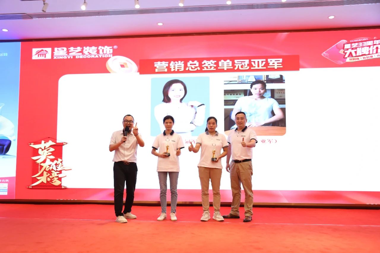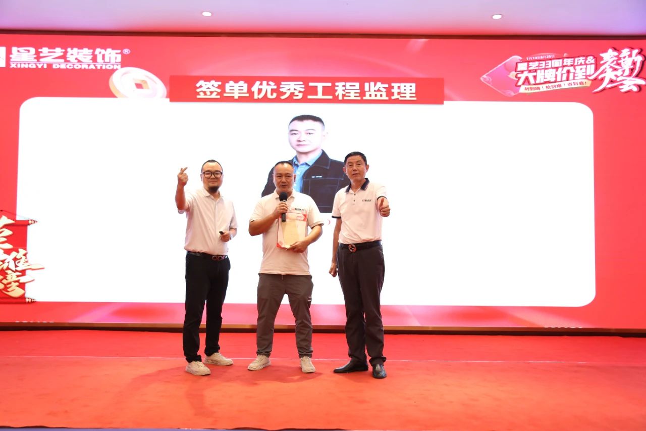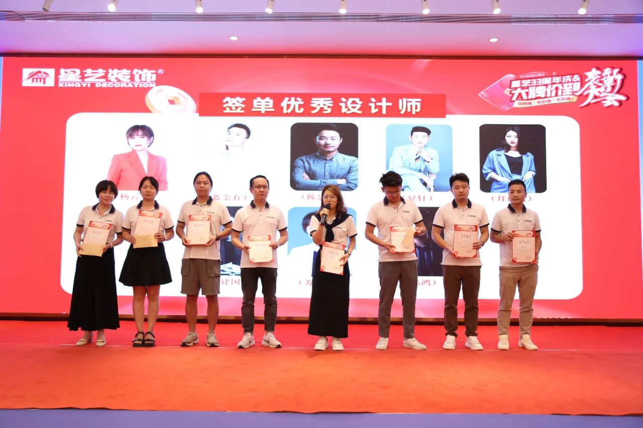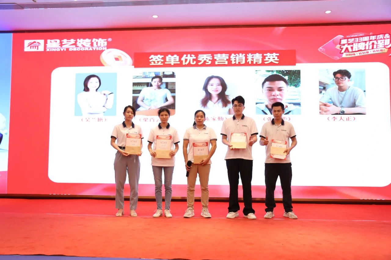 緊接著,大會進入“33周年慶&大牌價到(南寧站)”總結表彰會環(huán)節(jié),星藝南寧區(qū)域總經理周平生、星藝南寧區(qū)域設計總監(jiān)李明以及星藝南寧區(qū)域副總胡四民在簡要總結了33周年慶活動所取得的成績后,分別對“33周年”活動中表現(xiàn)優(yōu)秀的個人、團隊進行表彰嘉獎,樹立榜樣,激勵員工奮進。