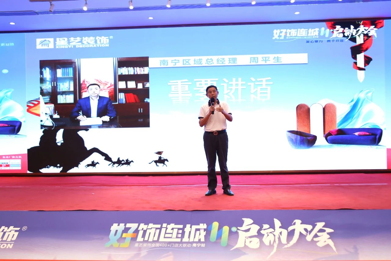 啟動會最后,星藝南寧區(qū)域總經理周平生做對會議總結,周總對此次啟動會培訓效果表示肯定,同時也在會上強調了此次“好飾連城11”的重要性,鼓勵星藝各個部門的家人們學以致用,加大服務力度,用心服務,將“星”品質帶給每位業(yè)主,并預祝此次活動取得佳績。
