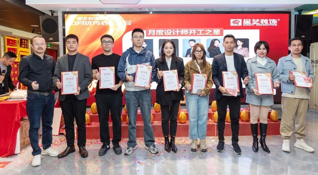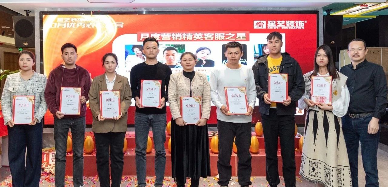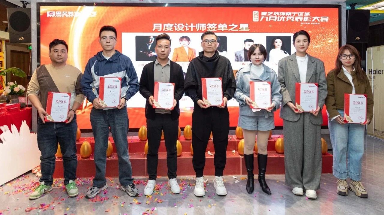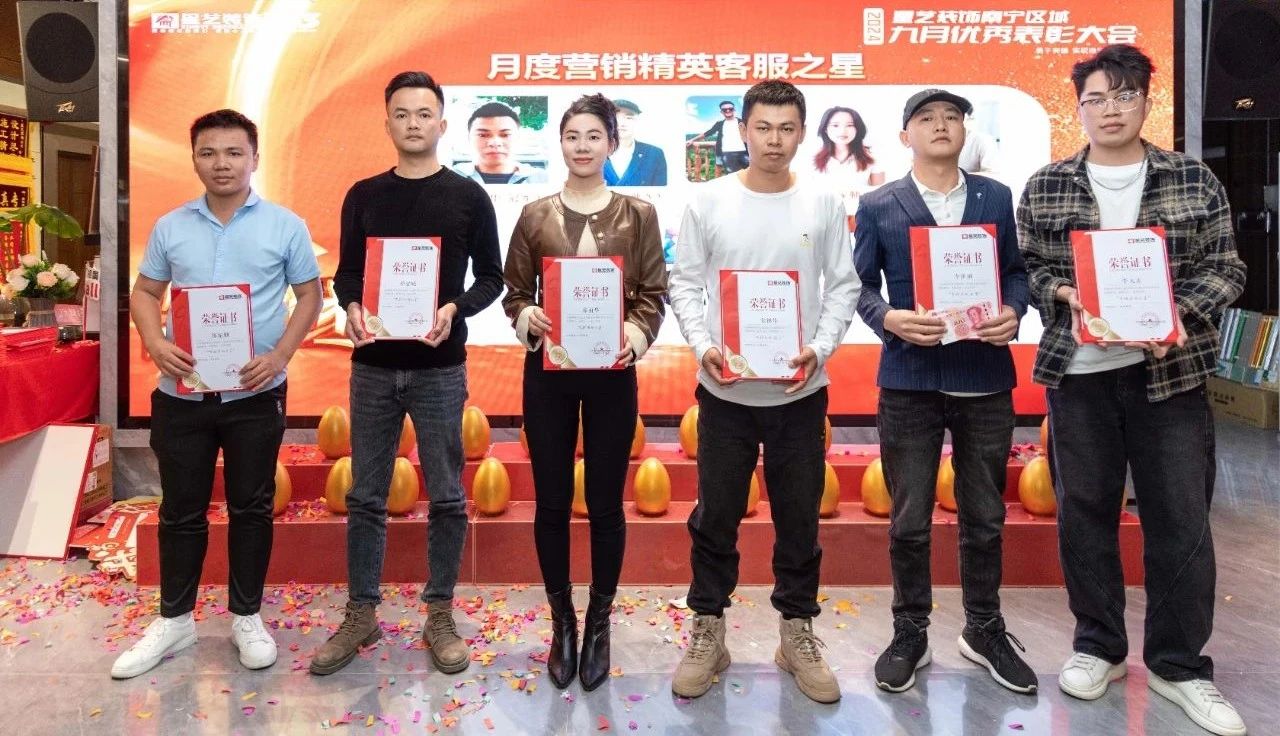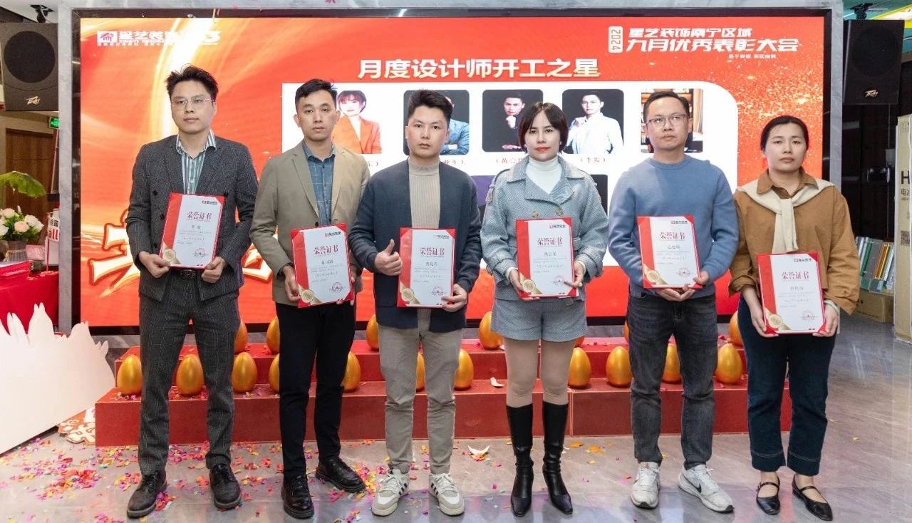 會(huì)議開始,星藝南寧區(qū)域總經(jīng)理周平生、星藝南寧區(qū)域設(shè)計(jì)總監(jiān)李明以及星藝南寧區(qū)域副總經(jīng)理胡四民率先為9月份、10月份表現(xiàn)優(yōu)異的星藝團(tuán)隊(duì)及家人頒發(fā)月度獎(jiǎng)勵(lì)以及證書,并號(hào)召現(xiàn)場(chǎng)星藝家人向優(yōu)秀看齊。