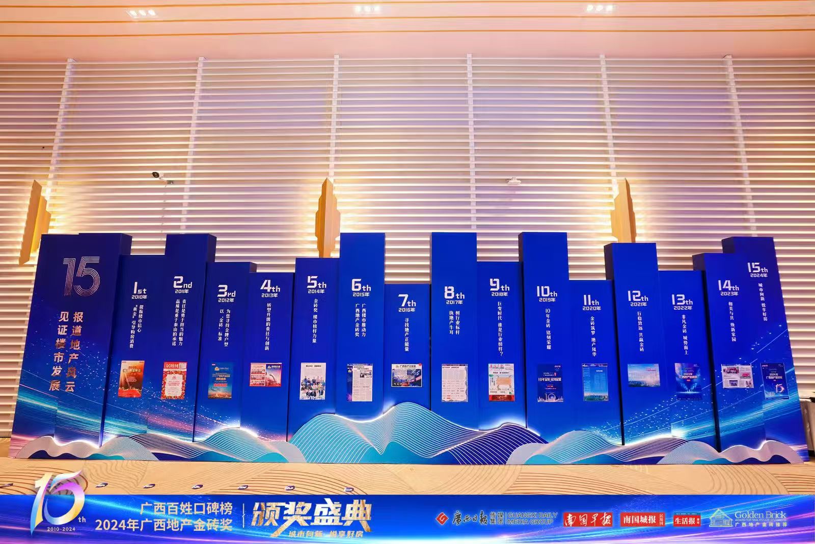12月26日下午,由廣西日報傳媒集團主辦,南國早報、南國城報·居周刊、當代生活報聯(lián)合承辦的“廣西百姓口碑榜——2024年廣西地產(chǎn)金磚好房節(jié)暨廣西地產(chǎn)金磚獎頒獎盛典”在南寧國際會展中心好友緣隆重舉行。此次盛會匯聚了廣西地產(chǎn)行業(yè)的翹楚及上下游產(chǎn)業(yè)界的精英,共同見證了31項大獎的榮耀時刻,攜手開啟美好人居的新篇章。