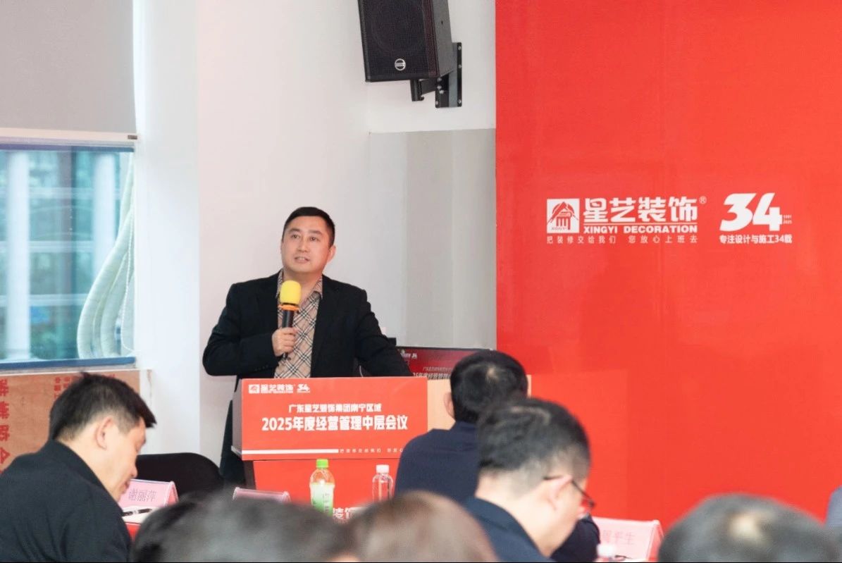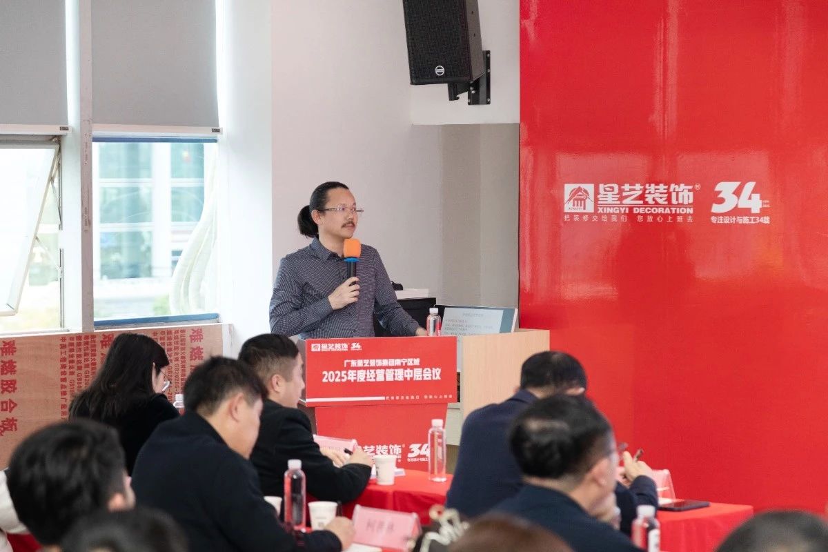 會(huì)議開(kāi)始,星藝南寧區(qū)域設(shè)計(jì)總監(jiān)李明先是總結(jié)2024年星藝南寧各大部門所取得的成績(jī),并提出”優(yōu)化提效“、”精細(xì)化板塊“”客戶管理系統(tǒng)“等方面進(jìn)行致辭;星藝南寧區(qū)域副總經(jīng)理胡四民就”材料管理“、”人才培養(yǎng)“以及”大家居“等方面進(jìn)行解析。