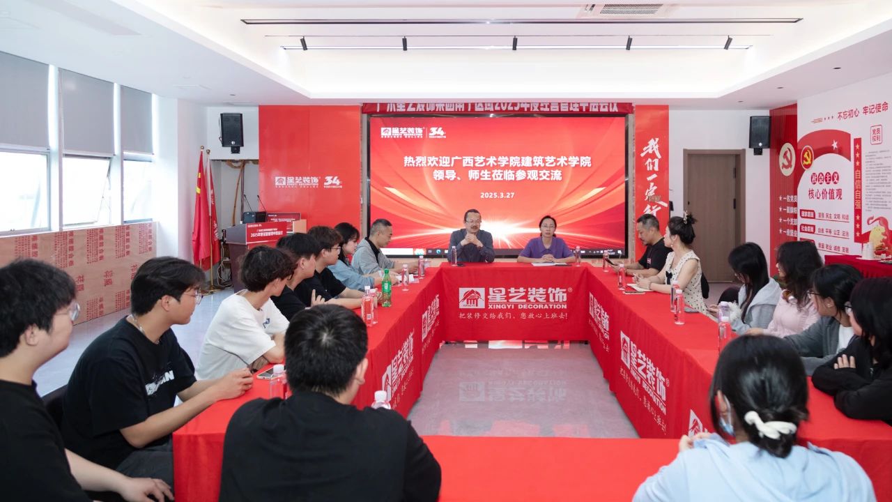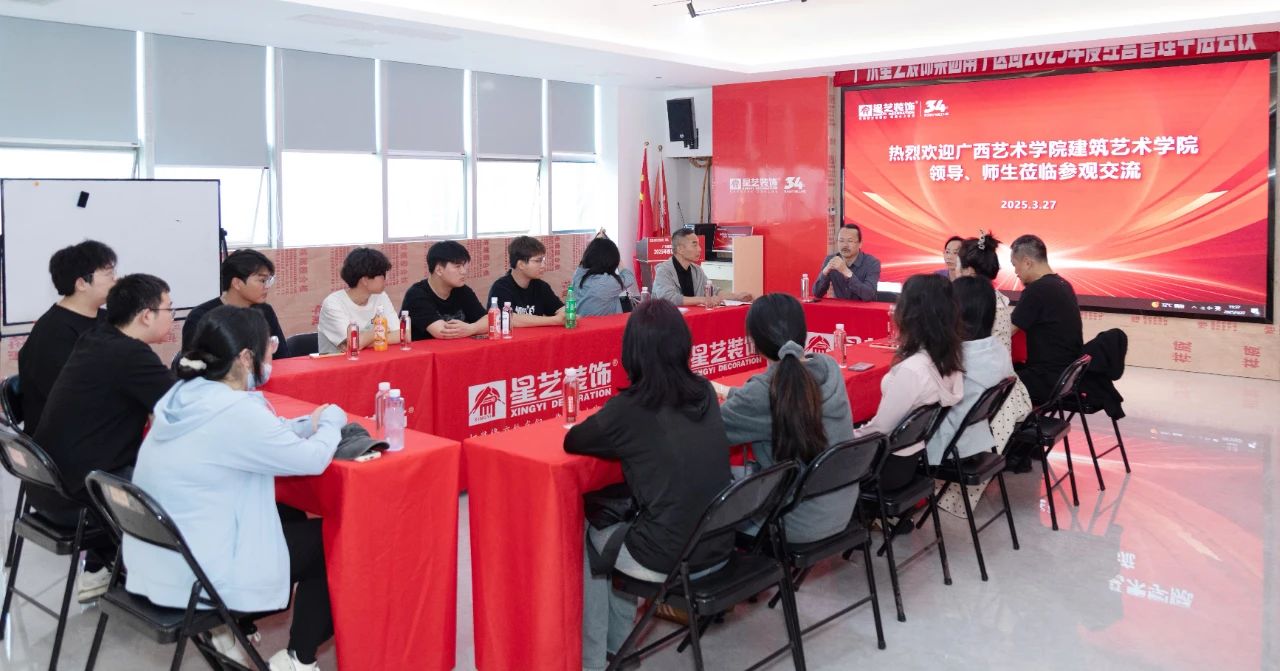 座談會(huì)上,李工代表星藝裝飾向?qū)W校師生一行人表示誠摯的歡迎,并與周云云經(jīng)理分別介紹了星藝裝飾創(chuàng)立34年、入邕23年以來的發(fā)展歷程、人才培養(yǎng)方式、校企合作理念以及與廣藝建院的星藝獎(jiǎng)學(xué)金、廣藝在企優(yōu)秀學(xué)生代表的故事等;李工表示,星藝南寧在當(dāng)下新形勢(shì)和新模式發(fā)展中需要更多優(yōu)秀學(xué)生持續(xù)加入,并表達(dá)了期待能與廣西藝術(shù)學(xué)院建筑藝術(shù)學(xué)院在人才培養(yǎng)、產(chǎn)學(xué)融合等方面的深化交流合作,實(shí)現(xiàn)雙向賦能,為建筑裝飾行業(yè)培養(yǎng)更多的專業(yè)人才。
