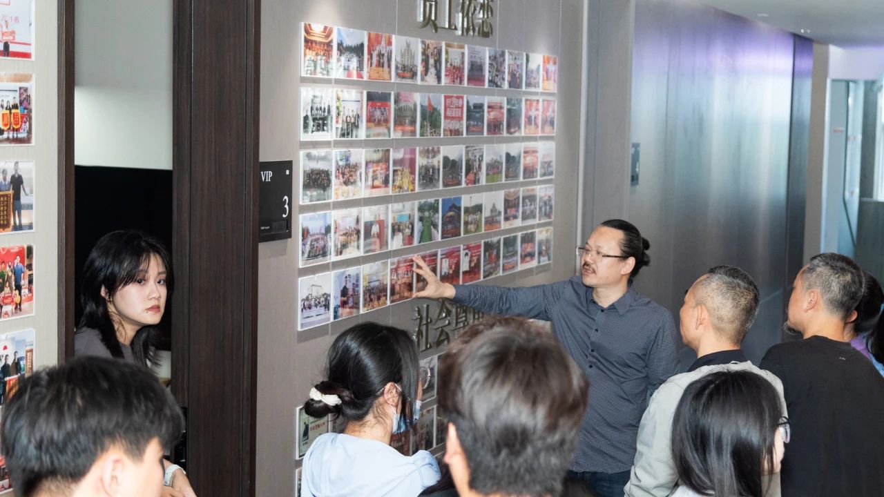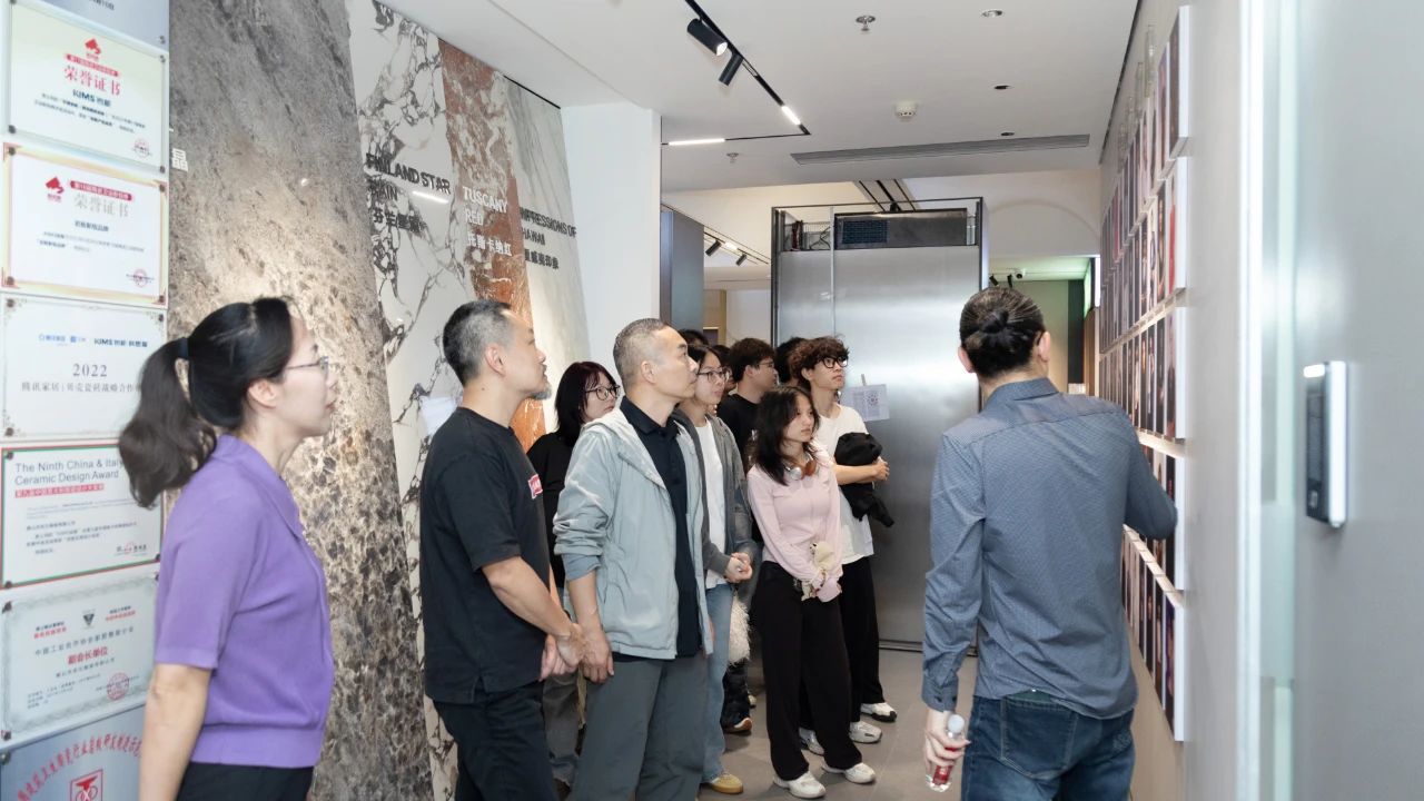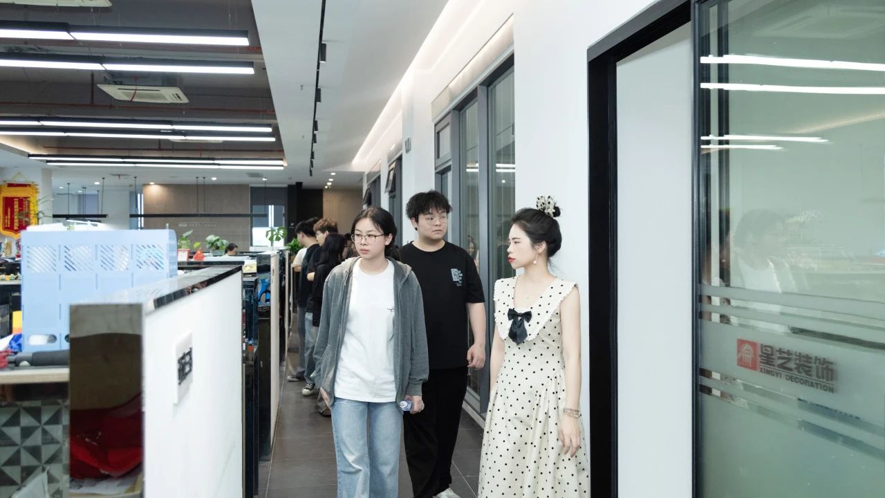 交流會(huì)后,李工和周云云經(jīng)理帶領(lǐng)學(xué)校師生一行人參觀了星藝南寧廣西總部的材料展廳、企業(yè)文化長廊、辦公室等,并就星藝裝飾在南寧發(fā)展的歷程向廣藝師生們展示了企業(yè)的綜合實(shí)力、業(yè)務(wù)布局以及專利、設(shè)計(jì)成果等方面,讓廣藝師生們留下了深刻印象。