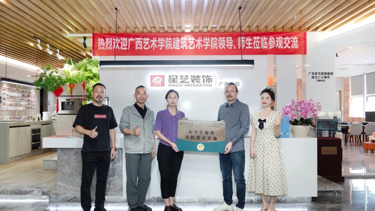 最后,在眾人的見證下,廣西藝術(shù)學(xué)院建筑藝術(shù)學(xué)院向麗麗書記、莫敷建副院長、韋俊宇副書記一同向星藝南寧授予廣西藝術(shù)學(xué)院“大學(xué)生校外實(shí)踐基地”牌匾,標(biāo)志著校企雙方將依托各自資源優(yōu)勢(shì),攜手培養(yǎng)行業(yè)高素質(zhì)人才,推動(dòng)產(chǎn)教深度融合,為裝飾建筑行業(yè)可持續(xù)發(fā)展注入新的活力。