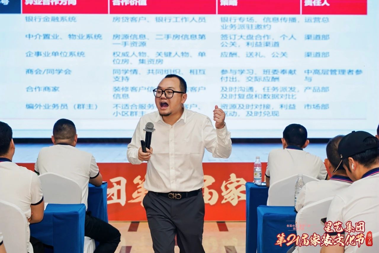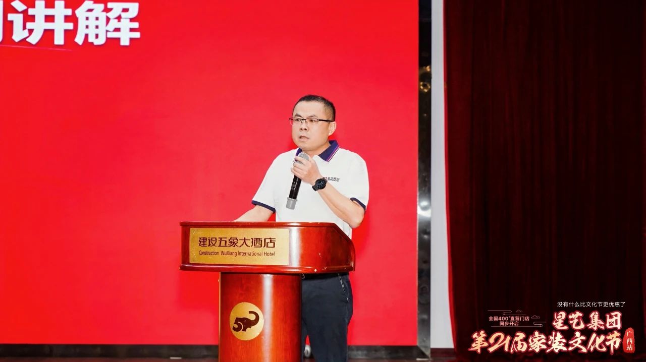 隨著時(shí)間的推移,啟動(dòng)會(huì)進(jìn)入正式啟動(dòng)環(huán)節(jié),集團(tuán)副總裁凌峰就此次活動(dòng)方案進(jìn)行了詳細(xì)的講解,闡述2025年文化節(jié)活動(dòng)新的調(diào)整,同時(shí)指出活動(dòng)亮點(diǎn)以及規(guī)則,并表示在本屆裝飾文化節(jié)中,除了“免單21萬”驚喜大獎(jiǎng),還特別為業(yè)主提供了更多、更大的驚喜福利,并預(yù)祝現(xiàn)場星藝家人在此次活動(dòng)取得佳績。
