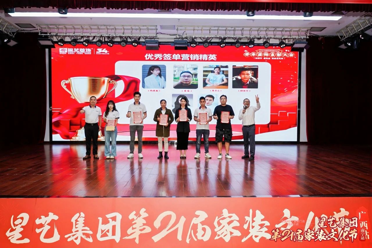 4月10日,星藝裝飾第21屆裝飾文化節(jié)(廣西站)啟動(dòng)誓師大會(huì)在廣西建設(shè)五象大酒店多功能廳隆重舉行。星藝集團(tuán)副總裁凌峰、星藝廣西區(qū)域總監(jiān)徐橘、廣西區(qū)域副總經(jīng)理蔣京武、星藝南寧區(qū)域總經(jīng)理周平生、南寧區(qū)域總監(jiān)李明、南寧區(qū)域副總經(jīng)理胡四民以及星藝廣西區(qū)域各分公司總經(jīng)理、總監(jiān)、門店經(jīng)理、員工代表、材料商家代表約七百余人齊聚一堂,共同學(xué)習(xí)奮進(jìn),以精神飽滿的姿態(tài)一起啟動(dòng)星藝裝飾第21屆家裝文化節(jié)(廣西站)?,F(xiàn)場氛圍火熱,氣勢(shì)如虹,為啟動(dòng)年度最值得期待的家裝盛宴吹響第一陣號(hào)角。