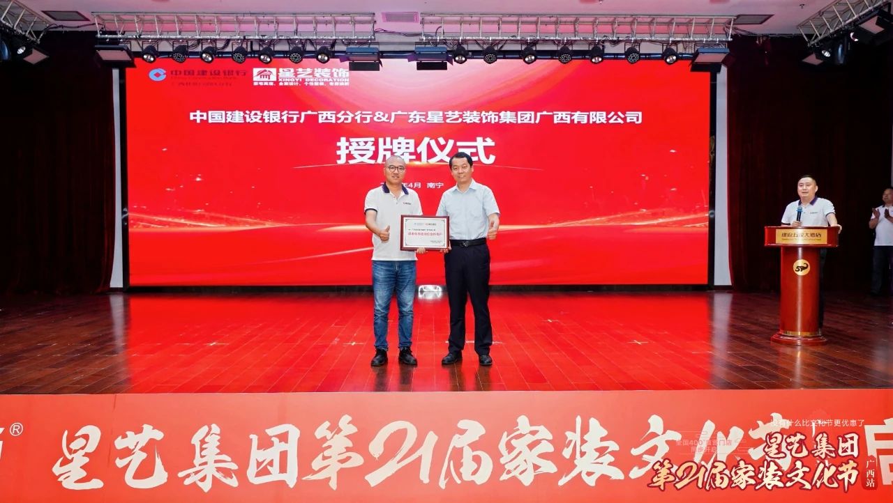 下午,中國建設(shè)銀行廣西區(qū)分行信用卡部薛江偉副總經(jīng)理、高新支行王凌娟副行長、園湖支行劉衛(wèi)華副行長等領(lǐng)導(dǎo)出席了此次啟動(dòng)會(huì)。星藝裝飾作為建行重要合作伙伴,將攜手星藝裝飾在“適老化改造”上愈加緊密合作,并在現(xiàn)場授予星藝廣西為“適老化改造特約合作商戶”,共同關(guān)愛老年生活,讓設(shè)計(jì)和服務(wù)更有溫度。