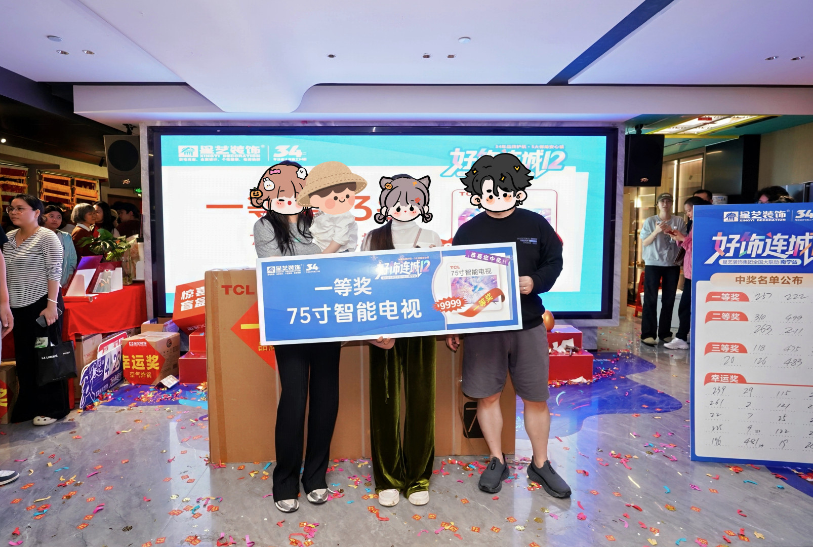 落地狂歡現(xiàn)場(chǎng),在新老業(yè)主的見(jiàn)證下,75寸品牌液晶電視、雙開(kāi)門冰箱、洗烘一體機(jī)等品牌家電好禮100%兌付,以此感謝新老客?戶對(duì)星藝裝飾的信賴與厚愛(ài),也為“好飾連城12(南寧站)”活動(dòng)劃上圓滿句號(hào)。