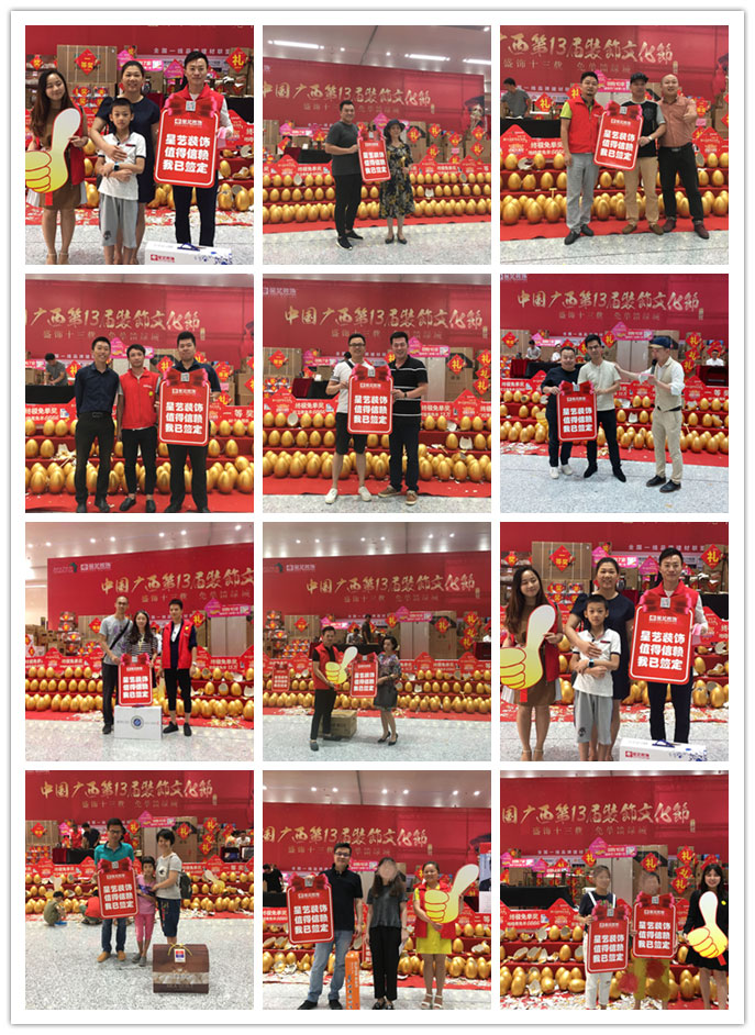 中國星藝?廣西第十三屆裝飾文化節(jié)南寧站活動今天圓滿落幕,星藝人再次以創(chuàng)紀錄的510單之成績,又一次踐行了“客戶贊許,員工依戀,社會尊重”的星藝品牌力量!