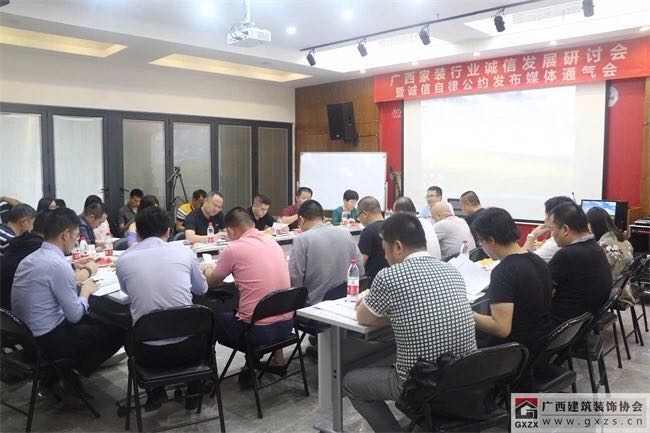 基于此背景下,5月14日下午,由廣西建筑裝飾協(xié)會牽頭,組織會員企業(yè)代表在星藝裝飾南寧分公司會議室召開——廣西家庭居室裝飾裝修行業(yè)誠信發(fā)展研討會暨媒體通氣會。廣西電視臺新聞頻道、南寧電視臺、新聞910廣播電臺、南國早報、南寧晚報主流媒體受邀出席會議。